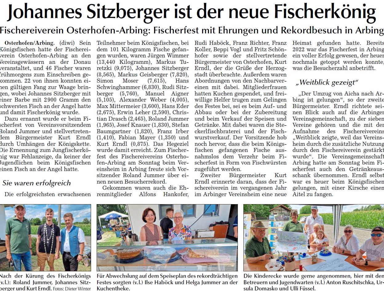 Auch in diesem Jahr hielten wir unser traditionelles Königsfischen mit anschließendem Fischerfest in Arbing ab. Die gefangenen Fische wurden wieder zu leckeren Fischwürsten verarbeitet. Daneben gab es auch leckeren Dorsch, Käse, Steckerlfische und Flammkuchen.