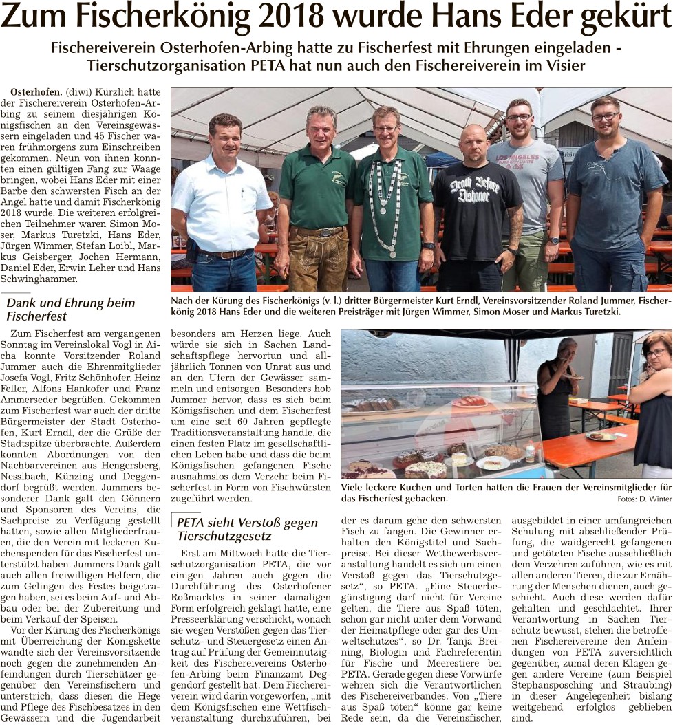 Am Sonntag, den 29.04.2018 trafen sich 40 Petrijünger, davon 4 Jugendliche, an der heimischen Donau zum diesjährigen Hegefischen. Geangelt wurde von 6-11 Uhr wobei etwa 53 Kilo Fisch gefangen wurde. Dieser wird wieder zu leckeren Fischwürsten beim alljährlichen Fischerfest verarbeitet.
